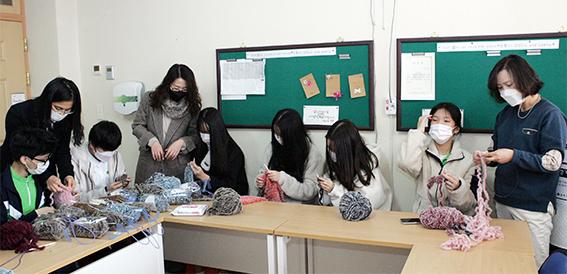 ‘사제동행 목도리 뜨기’는 11월 한 달 동안 100명의 학생과 교직원이 100개의 목도리를 완성해 소방서, 선별 진료소, 독거 어르신 가정에 전달하는 행사다. 올해 코로나19 확산으로 현장에서 구슬땀을 흘리는 소방관과 의료진의 노고에 감사함을 전하는 의도에서 시작됐다.