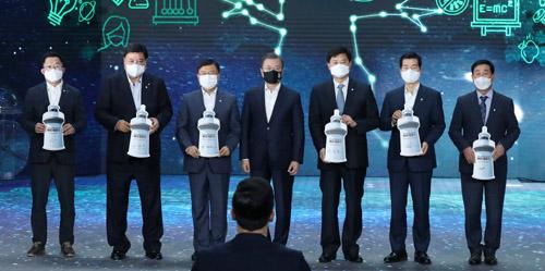 문 대통령은 "젊은이들이 창의적 아이디어를 찾고 자유롭게 연구하도록 돕겠다. 정부는 바이오 R&D 예산을 올해 1조3000억원에서 내년 1조7000억원으로 확대할 계획"이라며 "특히 연 1조원 이상 매출을 올리는 블록버스터 신약개발을 적극 돕겠다"고 밝혔다.