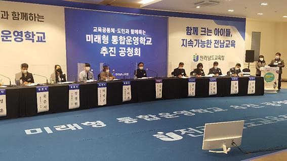 전남도교육청은 17일 오후 나주 시티호텔에서 교육공동체·도민과 함께하는 미래형통합운영학교 추진 공청회를 갖고 ‘(가칭)미래형 통합운영학교 추진 기본계획’을 발표했다.