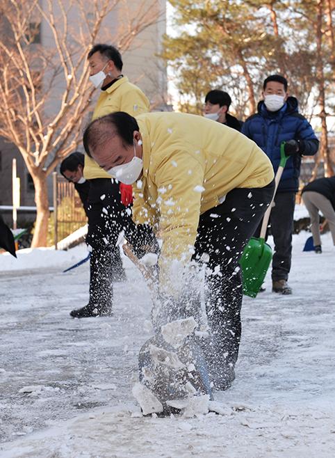 이번 제설작업에는 시교육청 장휘국 교육감을 비롯한 전 직원이 동참했다. 직원들은 교육청 인근 도로, 주택가 등 빙판길에 취약한 구간에 염화칼슘 등 제설제를 이용하고, 제설삽으로 빙판위에 쌓인 눈과 얼음을 제거하는 등 제설작업을 실시했다.