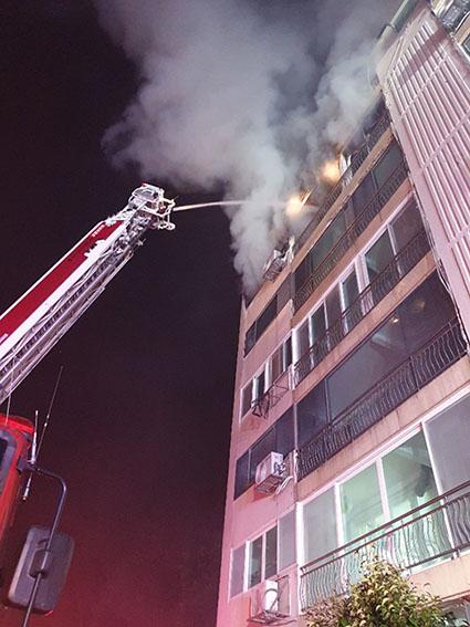 화재는 도착 당시부터 화세는 최성기였고, 연소확대와 인명피해가 우려되는 상황이었다. 자칫 옆 동으로 연소가 확대될 가능성을 차단하기 위해 연소확대 방지에 주력했다. 동시에 외부에서 굴절사다리차를 활용하여 주수를 실시하고, 건물 내 진입하여 양면으로 화재진압을 실시했다.