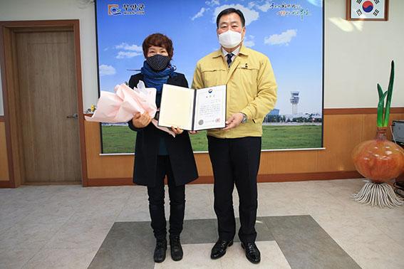 무안군(군수 김산)은 지난 25일 성인 문해교실 김미 강사가 문해교육 활성화에 기여한 공을 인정받아 교육부 장관 표창을 수상했다고 밝혔다.