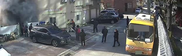 옥외 소화전과 연결된 배관을 맨 손으로 잡아 쥔 시민들은 초기 진화에 적극 나섰다. 화마와의 사투가 5분째 이어질 무렵, 소방당국이 도착해 8분 만에 잔불을 껐다.