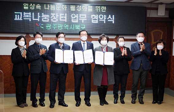 광주동부교육지원청이 지난 5일 광주북구청 및 (사)광주북구새마을회와 ‘교복나눔운동 활성화 업무협약’을 체결했다고 7일 밝혔다.