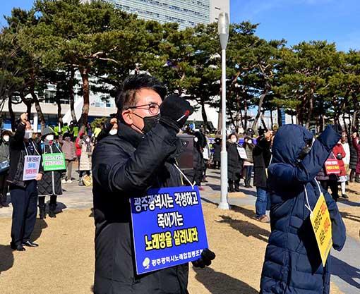 광주 지역 노래연습장 업주들이 광주시에 민생 안정 지원과 방역 지침 완화를 강하게 촉구하고 나섰다.