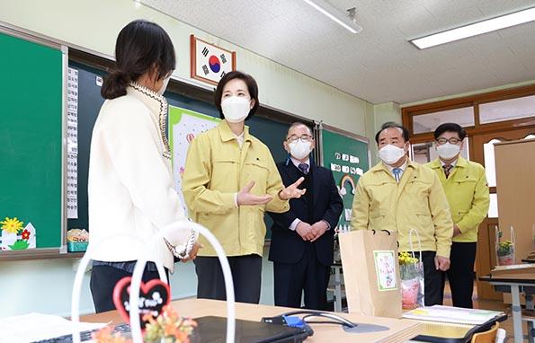 유은혜 부총리 겸 교육부장관이 신학기 교육과정 운영 준비 상황을 점검하기 위해 광주 일동초등학교를 방문했다.