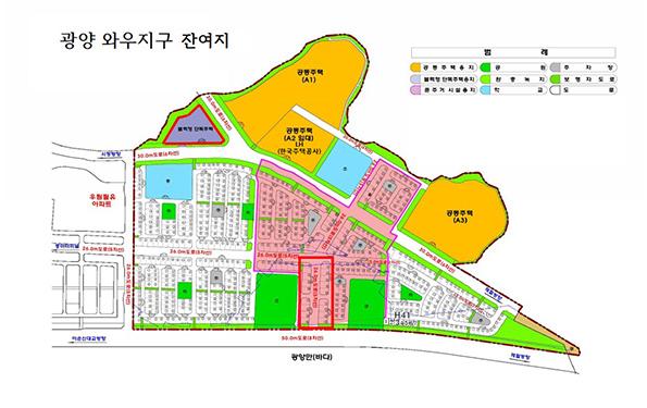 광양시가 와우지구 도시개발사업이 지난 2020년 9월 23일자 환지처분 공고를 끝으로 사업이 완료됨에 따라 잔여지 매각을 수의계약으로 적극 추진하고 있다고 밝혔다.