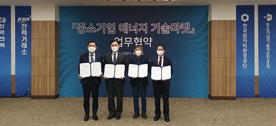 한전은 25일 대전에 소재한 한전 전력연구원에서 전력거래소, 중소기업기술정보진흥원, 한국원자력환경공단과 '중소기업 에너지 기술마켓' 추가 업무협약을 체결했다고 밝혔다.