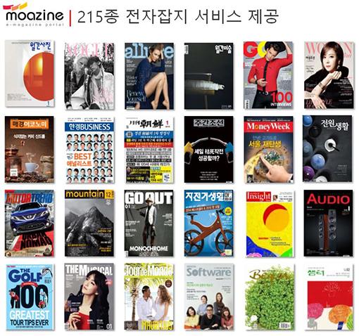 전자잡지는 시사, 경제, 패션 등 국내 잡지 215종이며 2만여 권의 최신호와 과월호 등 총 80만 건의 잡지 기사가 실려 있다.