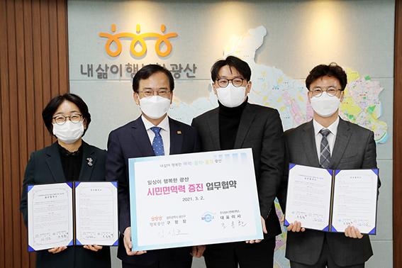 광산구(구청장 김삼호)가 2일 구청에서 질병 예방과 시민 건강 증진 문화 정착을 위해 면역항암제인 NK세포 개발업체인 엔케이맥스와 업무협약을 개최했다.