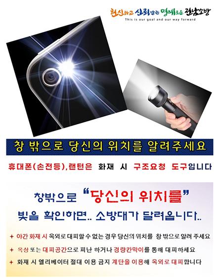 순천소방서는 대형화재 및 인명피해를 최소화기 위해, 화재 시 요구조자의 위치를 명확히 확인할 수 있는 ‘생명의 빛 Project’를 실시했다.