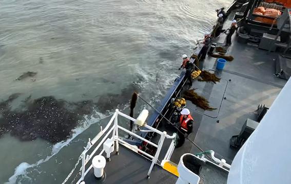 괭생이모자반 수거하는 목포해경. (사진=목포해경 제공) 2021.01.14.