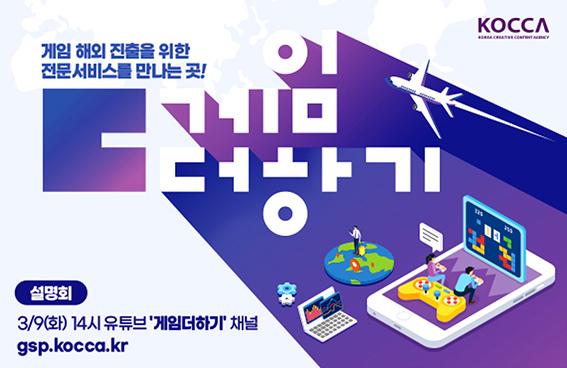 이 사업은 국산 게임의 해외시장 직접 진출을 확대하고 중소게임기업 역량 강화를 위해 추진하며, 게임개발사가 해외 진출 시 필요한 전문 서비스를 오픈마켓 형태의 전용 플랫폼인 '게임더하기'에서 직접 검색·조회하고, 포인트로 거래할 수 있다.