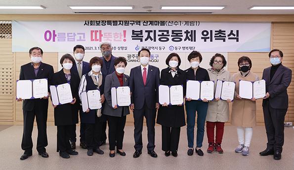 동구(청장 임택)는 지난 15일 보건복지부 공모사업으로 선정된 산계마을 사회보장특별지원구역사업에 참여해 활동하게 될 ‘아따(아름답고 따뜻한)!’ 복지공동체 위원 위촉식을 가졌다고 밝혔다.