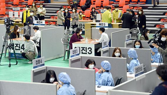 이날 예방접종센터 모의훈련을 점검한 이용섭 광주시장은 "10여일 전부터 지역 확진자가 하루 1~2명 선으로 대폭 줄어 다행이지만 본질적인 해결을 위해서는 백신접종이 필수적이다"며 "실전같은 훈련으로 운영체계에 완벽을 기해달라"고 당부했다.
