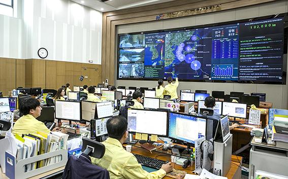 태풍 모니터링하는 한국농어촌공사 본사 재난종합 대응 상황실.