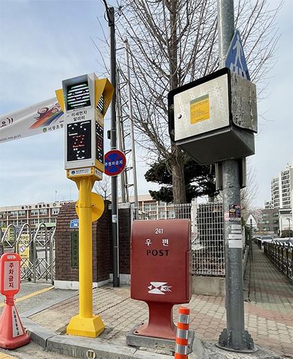이 미세먼지 신호등은 대기오염 측정소에서 수집된 정보를 실시간으로 송출하여 마스크 착용과 실외활동을 자제할 것을 당부하는 등 미세먼지 대응요령을 즉각적으로 확인할 수 있다.