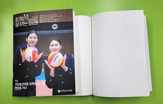 전남도교육청(교육감 장석웅)이 매월 발행하는 소식지 '함께 꿈꾸는 미래'의 묵·점자혼용본을 제작·배포한다.