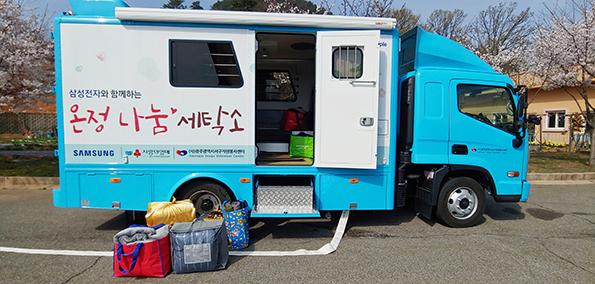 연중 운영되는 온정나눔세탁소는 2.5톤 규모의 트럭에 최신형 세탁기와 대형 건조기를 각각 2대씩 탑재하고 있다.
