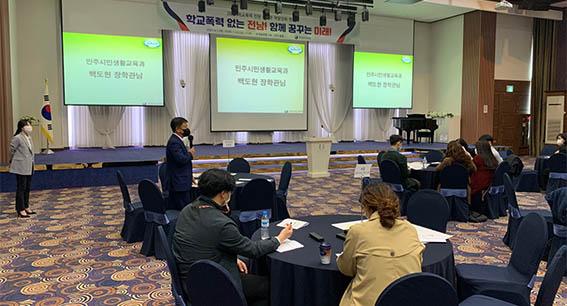 도교육청은 4월 1일~2일 이틀 동안 여수 유캐슬호텔에서 시군 교육지원청 학교폭력 전담 주무관 34명이 참석한 가운데 역량강화 연찬회를 갖고 이런 내용의 학교폭력 실태조사 계획을 안내했다.