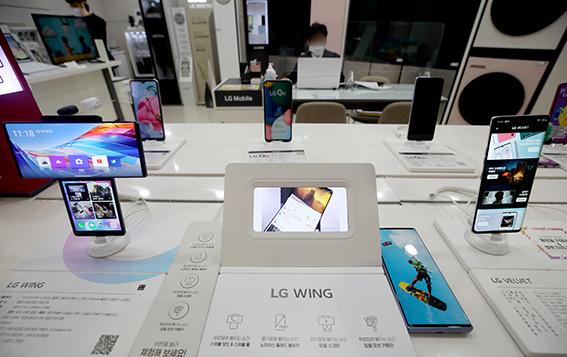LG전자가 적자를 내던 스마트폰 사업부 철수를 확정한 5일 오전 서울 시내 한 LG전자 매장에 스마트폰이 진열돼 있다. 2021.04.05.