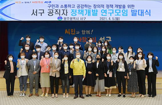 광주 서구(구청장 서대석)가 지난 5일 “서구 공직자 정책개발 연구모임(이하 연구모임)” 발대식을 갖고 올해 상반기 동안 본연의 업무와 병행하여 자발적으로 연구에 참여할 공직자들이 연구 목적과 기대 효과 등을 발표하며 포부를 다졌다.