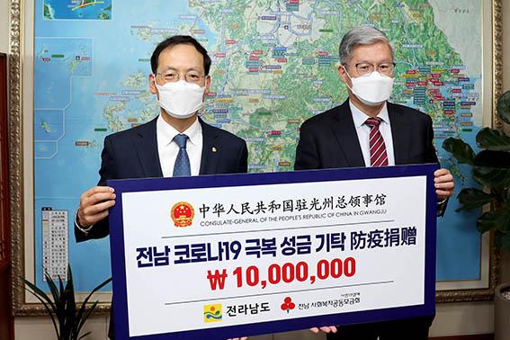 장청강 주광주 중국총영사관이 6일 전남도에 코로나19 극복 성금 1000만원을 기탁했다.