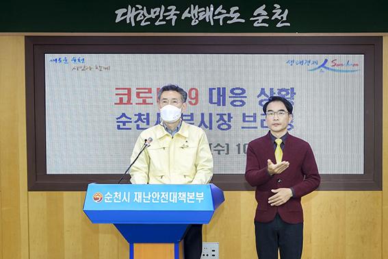 임채영 순천시 부시장은 7일 오전 브리핑을 통해 “아직 드러나지 않은 확진자가 산재해 있는 것은 아닌지 의심되는 매우 위중한 상황”이라면서,“특히, 이번 감염상황은 고령층에서 확산되고 있어 중증으로 악화되는 경우가 많은 만큼 증상유무와 관계없이 의심스러우면 반드시 코로나19 진단검사를 먼저 받아달라”고 당부했다.