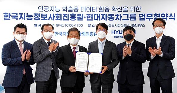 8일 현대차그룹에 따르면 그룹은 이날 한국지능정보사회진흥원 서울 사무소에서 체결식을 열고 '인공지능 학습용 데이터 공유 업무협약(MOU)'을 맺었다.