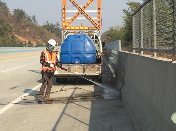 이에 따라, 소금 등의 염화물이 콘크리트 내부에 침투하지 못 하도록 고온·고압 살수장비로 세척하여 구조물의 안전성과 내구수명을 연장시키고자 하는 것이다.