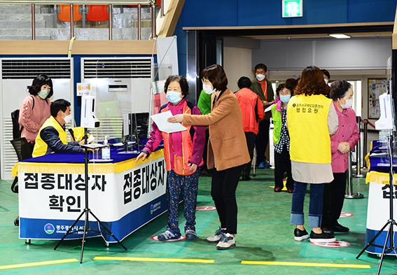 서구(구청장 서대석)가 염주종합체육관에 마련된 코로나19 예방접종센터에서 실시된 75세 이상 고령자에 대해 공급된 1회분 백신 예방접종을 완벽하게 마쳤다.