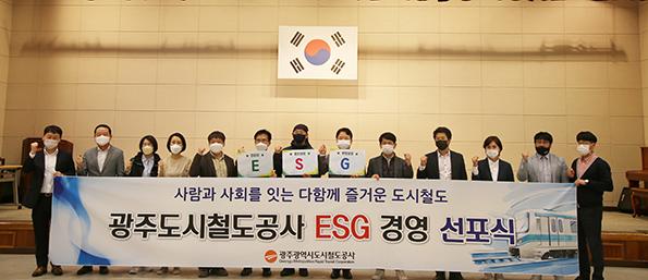 광주도시철도공사가 전국 도시철도 운영기관 최초로 ESG 경영 선포식을 갖고 환경(E), 사회(S), 지배구조(G)에 대한 책임 강화와 사회적 가치 창출에 나설 것을 선언했다.