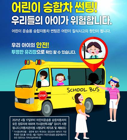 전남도는 어린이 운송용 승합자동차의 종합검사 시 모든 창유리에 대한 가시광선 투과율(선팅) 검사를 한다고 18일 밝혔다.
