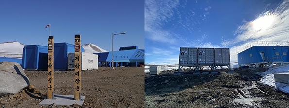 남극 장보고 과학기지(사진 왼쪽), 설치 완료된 중성자 관측기(사진 오른쪽). (사진 제공 = 전남대학교)