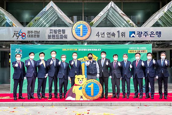 광주은행은 27일 본점에서 송종욱 은행장 등이 참석한 가운데 ‘2021년도 한국산업의 브랜드파워(K-BPI)’ 지방은행 부문 1위 인증식을 개최했다.