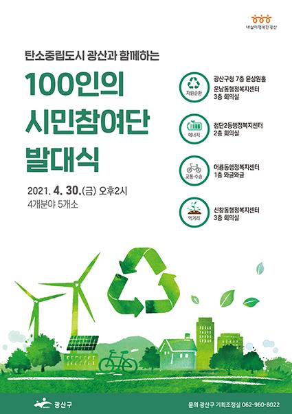 광산구(구청장 김삼호)가 기후위기에 대응하기 위해 시민 100명과 탄소중립도시를 향한 첫 걸음을 내딛는다.