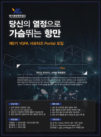 여수광양항만공사(이하 공사)는 항만에 대해 공부하면서 여수·광양항의 미래를 함께 고민할 5기 대학생 서포터즈 ‘Portist’를 모집한다고 6일 밝혔다.