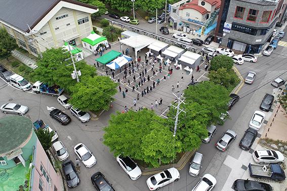 4일 오전 여수시보건소 주차장에 마련된 선별진료소에서 코로나19 검사를 받기위해 시민들이 줄을 서있다. (사진 = 여수시청 제공) 2021.05.04.
