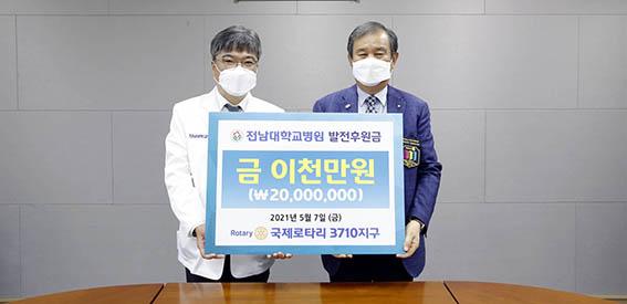 국제로타리 3710지구가 7일 전남대학교병원 발전후원금으로 2000만원을 기탁했다.