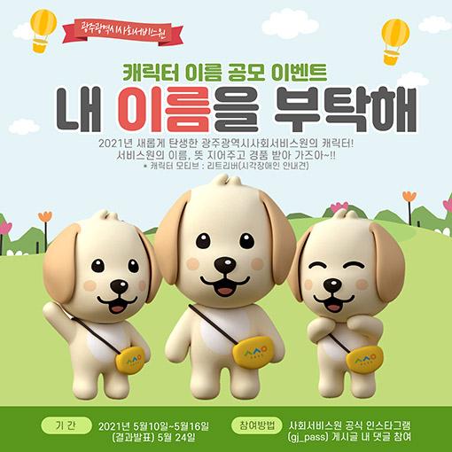 이와 함께 진행되는 캐릭터 이름 공모 이벤트는 이날부터 16일까지 진행된다. 이는 광주시사회서비스원 공식 인스타그램(gj_pass)게시글에 캐릭터 이름과 의미 등을 기재한 후 댓글로 응모하면 된다. 응모자격은 누구나 가능하다.