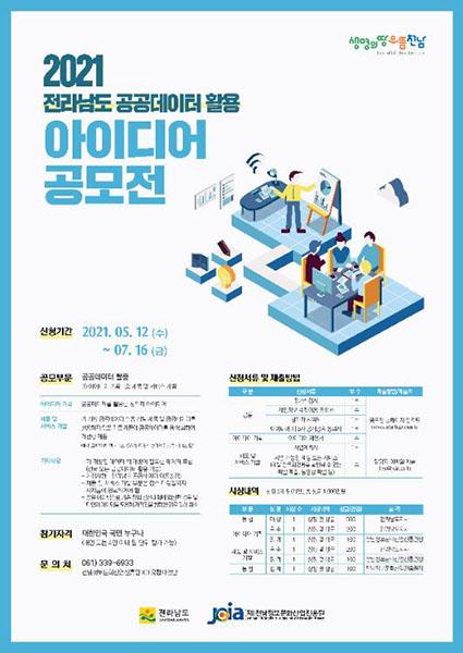전남도는 전남정보문화산업진흥원과 함께 공공데이터 활성화 및 혁신창업 촉진을 위해 ‘2021년 전남도 공공데이터 활용 아이디어 공모전’을 개최한다.