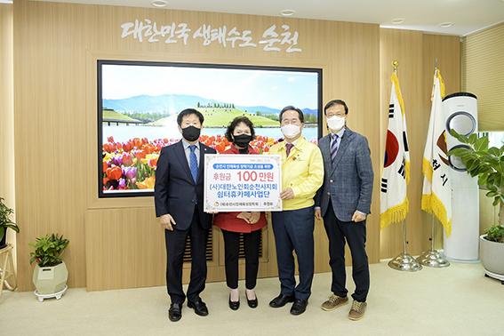순천시는 (사)대한노인회 순천시지회에서 운영하는 실버카페 ‘쉼터 휴(休)’ 수익금 100만원을 순천시인재육성장학회 후원금으로 전달했다고 12일 밝혔다.
