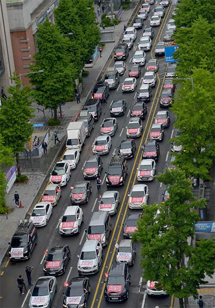 전국민주노동조합총연맹(민주노총)은 연맹 광주본부와 함께 15일 오후 광주 금남로 일대에서 차량 시위 행진을 재현했다.