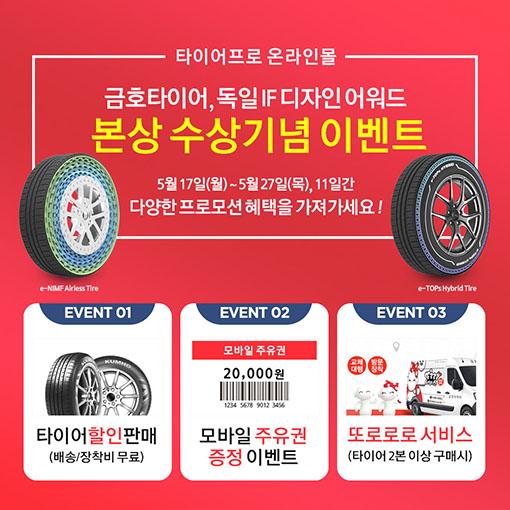 금호타이어가 '독일 iF 디자인 어워드 2021(International Forum Design Award 2021)' 운송기기 부문에서 2개 제품이 본상을 수상한 것을 기념해 프로모션 이벤트를 진행한다.