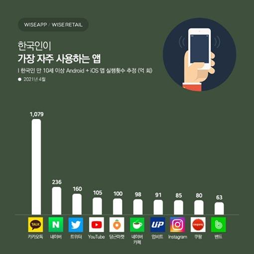 '한국인이 가장 자주 사용하는 앱' 5위권에 커뮤니티 앱으로는 유일하게 당근마켓(100억회)이 오르면서 네이버카페(6위), 인스타그램(8위), 네이버밴드(10위) 등 국내 및 글로벌 대표 커뮤니티와 SNS 서비스를 모두 앞섰다.