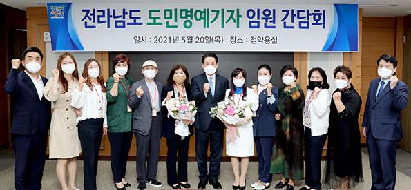 전남도는 20일 도청 정약용실에서 ‘내 삶이 바뀌는 전남 행복시대’를 널리 알리고 있는 도민명예기자 임원진과 간담회를 열고, 이들의 활동을 적극 지원키로 했다.