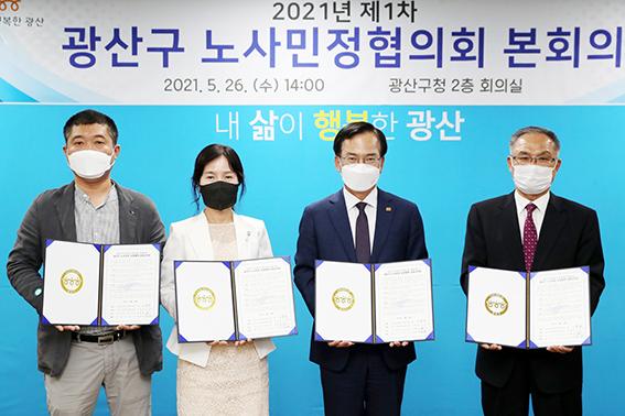 광산구는 26일 구청 2층 회의실에서 ‘2021년 제1차 노사민정협의회 본회의’를 개최하고 2021년 사업계획 및 활성화 방안에 대해 논의했다고 밝혔다.