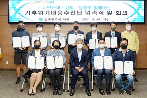 26일 출범한 기후위기대응추진단은 행정, 구의원, 기업, 시민단체, 환경전문가 등 총 15명으로 구성되었으며 앞으로 2년간 서구의 기후위기대응 및 탄소중립 추진전략을 자문·심의하게 된다.
