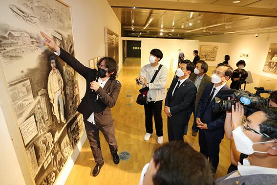김삼호 광산구청장은 “오늘 전시회는 41년 전 끝까지 도청에 남아 ‘항쟁을 잊지 말고 이어가라’던 윤상원 열사의 당부에 대한 우리의 대답이다”며 “5·18항쟁의 정신과 윤상원 열사를 살아 있는 역사로 만든 하성흡 작가님의 작품이 오월정신의 세계화에도 크게 기여할 것으로 믿는다”고 밝혔다.
