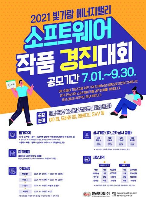 한전KDN이 주최하는 '2021 빛가람 에너지밸리 소프트웨어 작품 경진대회' 홍보 포스터.